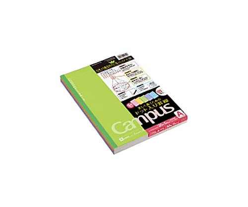 キャンパスノートセミB5(ドット罫) A罫 5冊 (商品番号: ) 数量 東大合格生のノートのとり方から生まれた美しく書くためのCampusノート! 5色カラーが大人気! ドットを目印にすれば短い定規でも長い線が書ける! 税抜価格 (税込価格) ¥441