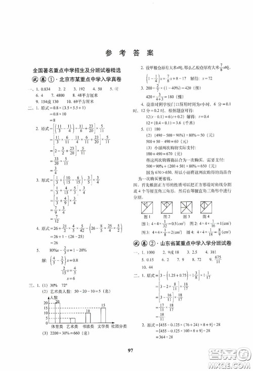 全国著名重点中学3年招生试卷及年预测试题精选数学答案 答案圈
